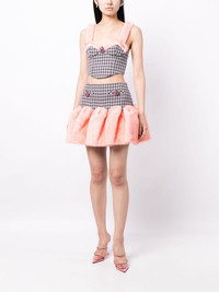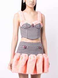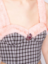 crystal-embellished faux-fur trim bustier Highlights - Lilac/multicolour - Virgin wool blend - Faux-fur trim - Crystal embellishment - Check pattern - Bustier-style neckline - Sleeveless - Thin shoulder straps - Rear zip fastening - Straight hem - Cropped Imported Composition Polyester 100% SIZE & FIT Model measurements Height 5 ft 10 in(1.77 m) Bust/Chest 28.74 in(73 cm) Hips 35.82 in(91 cm) Waist 24.4 in(62 cm) FittingInformation Designed for a close fit throughout The adjustable shoulder straps allow for a preferred fit when worn Made from a midweight non-stretch fabric This piece fits close in all sizes – take your usual size Washing instructions Dry Clean Only