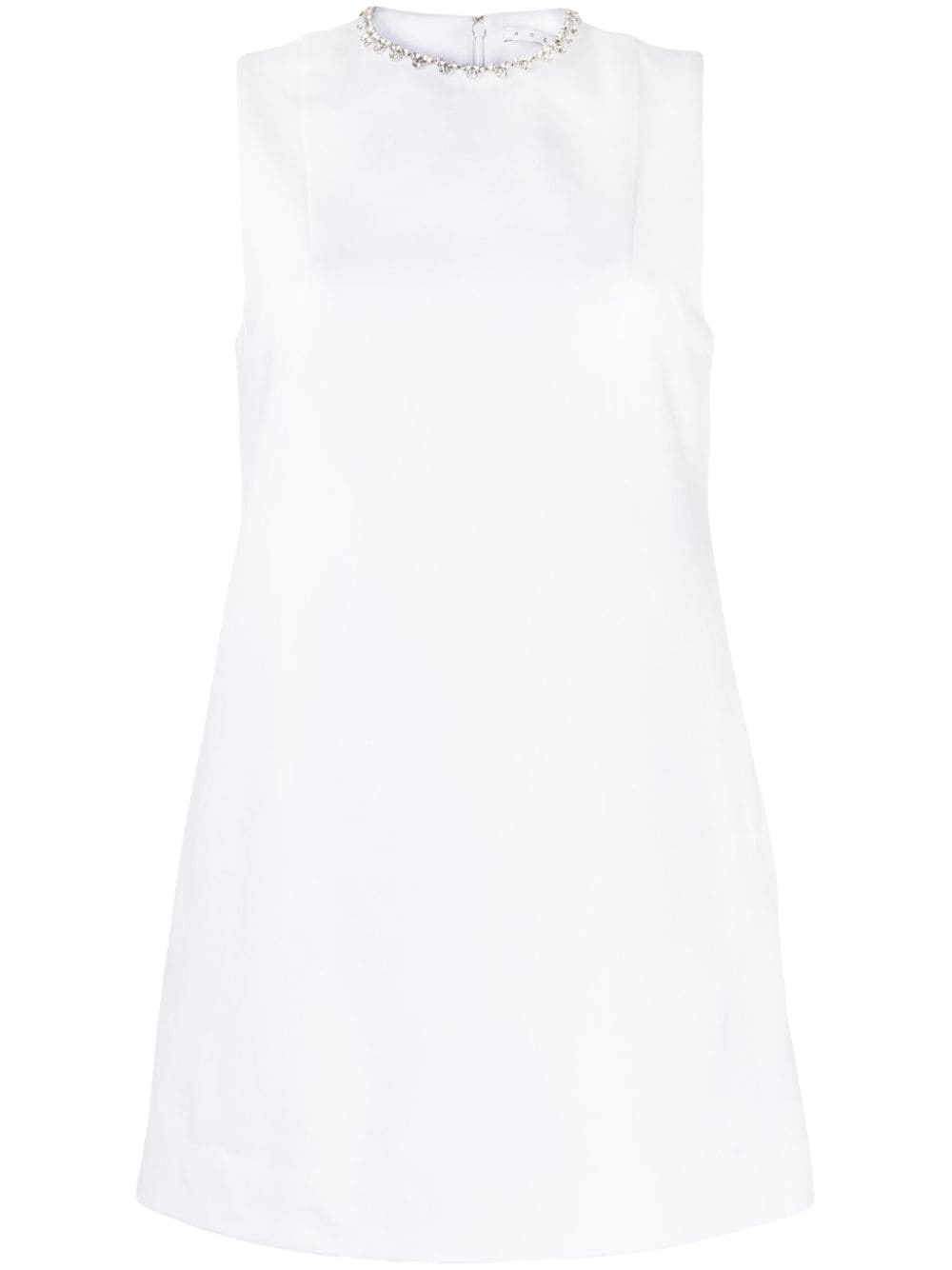 crystal-embellished heart mini dress Highlights - White - Crystal embellishment - Heart cut - Cut-out detailing - Round neck - Concealed rear zip fastening - Sleeveless - Two side inset pockets - Thigh-length - Straight hem Imported Composition Body: Rayon 67%, Nylon 28%, Elastane 5% SIZE & FIT Model measurements Height 5 ft 10 in(1.77 m) Bust/Chest 31.49 in(80 cm) Hips 35.43 in(90 cm) Waist 25.19 in(64 cm) Measurement LENGTH 30.31 in(77 cm) WAIST 32.28 in(82 cm) HIPS 37 in(94 cm) FittingInformation Designed to be unstructured, offering a loose fit throughout Made from a midweight non-stretch fabric, this piece offers minimal elasticity when worn This piece fits true to size – take your usual size