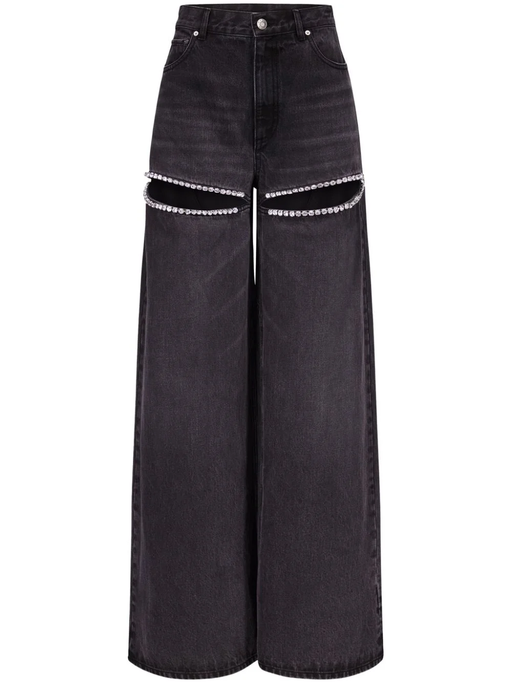 crystal-embellished high-rise wide-leg jeans Highlights - Black - Cotton - Denim - Crystal embellishment - Cut-out detailing - Wide leg - High waist - Belt loops - Concealed fly and button fastening - Classic five pockets Imported Composition Cotton 100% SIZE & FIT Measurement FRONT RISE 11.41 in(29 cm) INSIDE LEG 33.85 in(86 cm) HIPS 35.43 in(90 cm) WAIST 25.98 in(66 cm) Washing instructions Read Manufacturer Guidelines