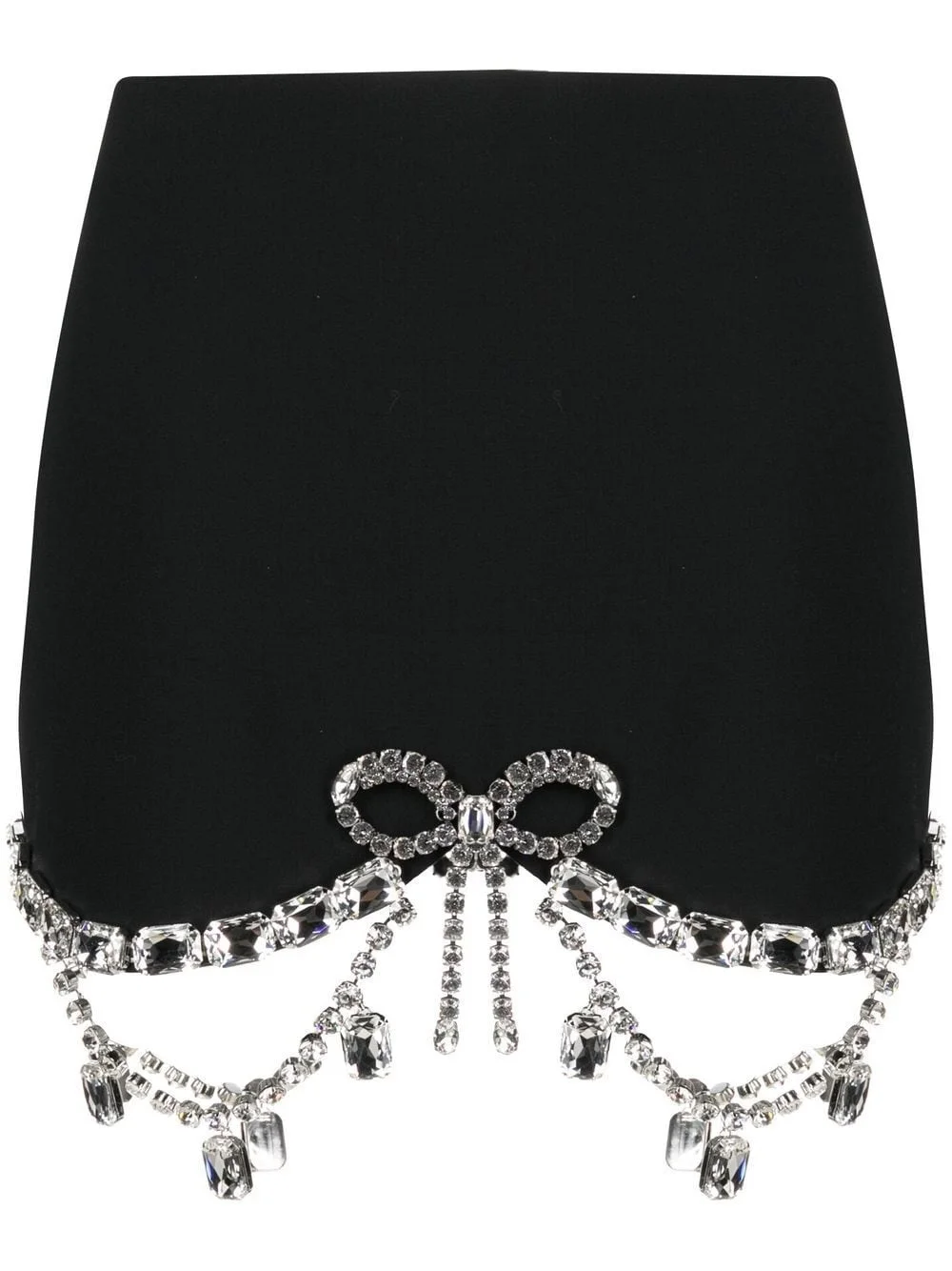 crystal-embellished mini skirt Known for its bold aesthetic, AREA transfers its signature embellished style to this mini skirt. This is further elevated by intricate bow detailing, highlighting the glamourous ethos of the brand. Imported Composition Outer: Polyester 53%, Virgin Wool 43%, Elastane 4% Lining: Polyester 96%, Elastane 4% SIZE & FIT Model measurements Height 5 ft 9 in(1.76 m) Bust/Chest 33.07 in(84 cm) Hips 34.64 in(88 cm) Waist 25.59 in(65 cm) FittingInformation This piece fits true to size. We recommend you get your regular size Cut for a slim fit Made with a mid-weight stretch fabric Washing instructions Dry Clean Only