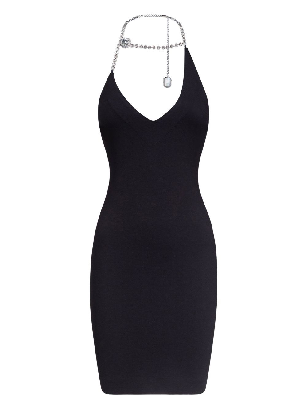 crystal-embellished minidress Highlights - Black - Concealed rear zip fastening - Lobster claw fastening - Chain-link detailing - Plunging v-neck Made In Italy Composition Viscose 68%, Polyamide 27%, Elastane 5%