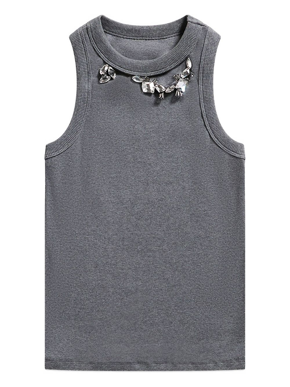 crystal-embellished ribbed tank top Highlights - Grey - Ribbed knit - Crystal embellishment - Sleeveless - Round neck - Neckline detail Imported Composition Polyester 96%, Polyurethane 4% Washing instructions Read Manufacturer Guidelines