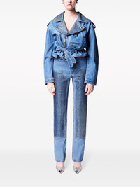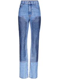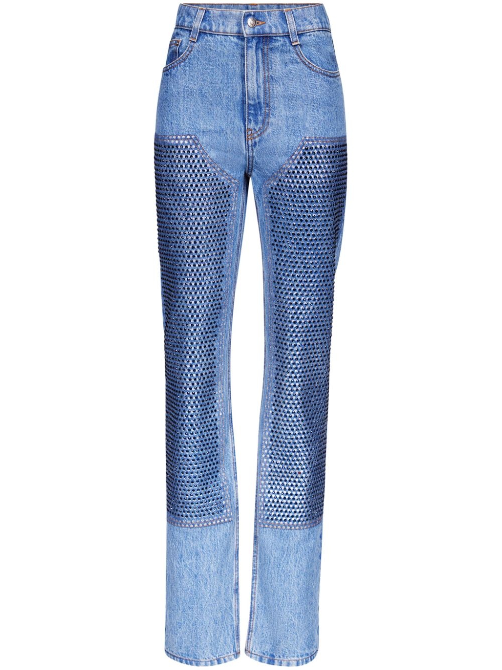 crystal-embellished straight-leg jeans Highlights - Light blue - Cotton - Denim - High-waisted - Belt loops - Concealed fly and button fastening - Classic five pockets - Crystal embellishment - Straight leg Made in Italy Composition Cotton 100% SIZE & FIT Measurement FRONT RISE 11.81 in(30 cm) INSIDE LEG 34.64 in(88 cm) HIPS 33.85 in(86 cm) WAIST 26.77 in(68 cm) Washing instructions Dry Clean Only