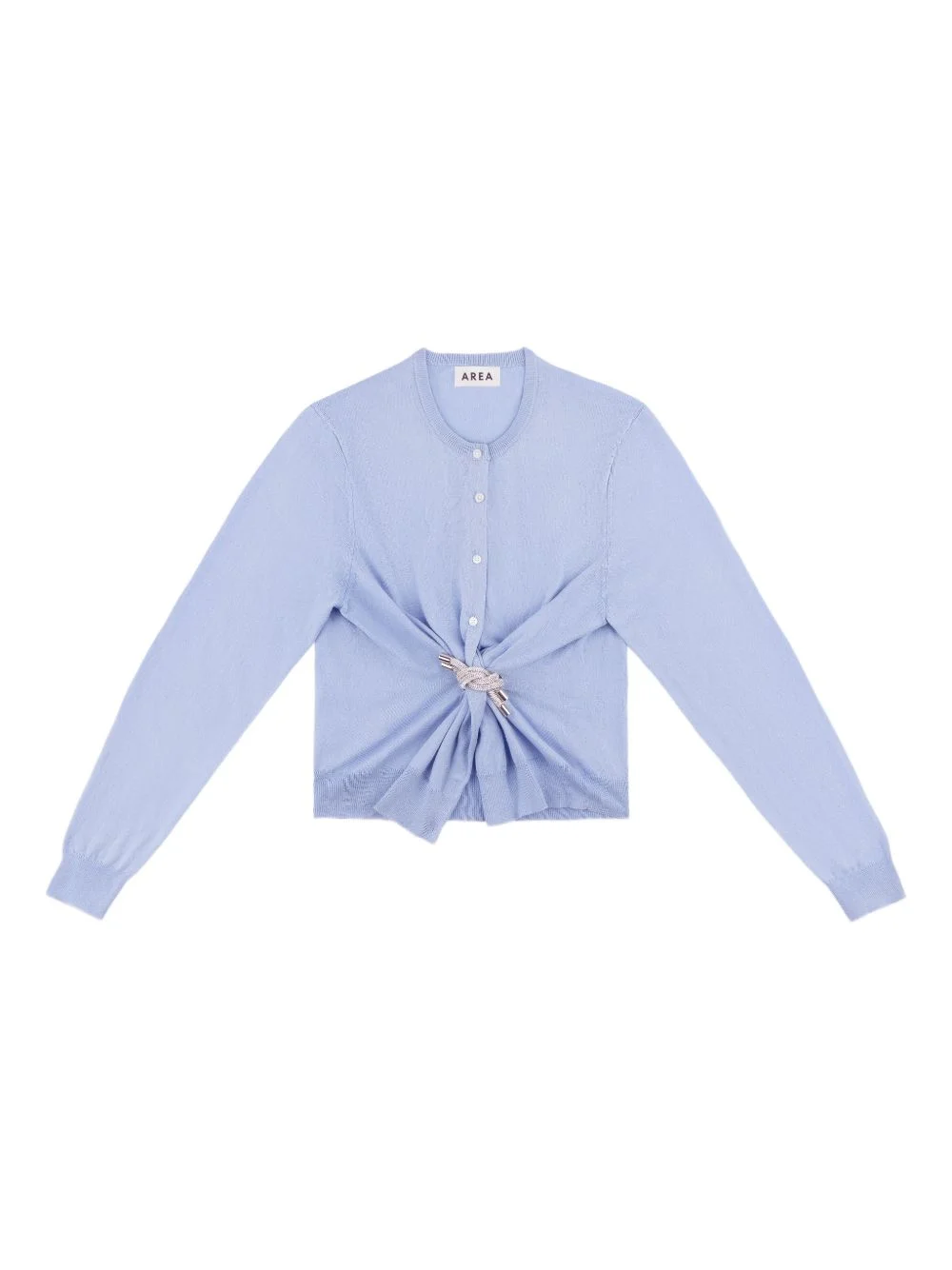 crystal-knot cardigan Highlights - Powder blue - Knot detail - Button fastening - Crew neck - Long sleeves - Ribbed trim Imported Composition Cotton 95%, Cashmere 5% Washing instructions Dry Clean Only