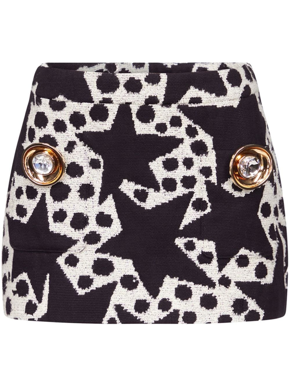 Crystal Medallion jacquard miniskirt Highlights - Black/white - Cotton blend - Jacquard - Medallion pendant - Star print - Polka dot print - Two front patch pockets - Concealed side zip fastening - Straight hem - Thigh-length Imported Composition Viscose 100%, Cotton 63%, Virgin Wool 30%, Polyamide 7% SIZE & FIT Measurement HIPS 36.22 in(92 cm) LENGTH 11.81 in(30 cm) WAIST 28.34 in(72 cm) Washing instructions Dry Clean Only