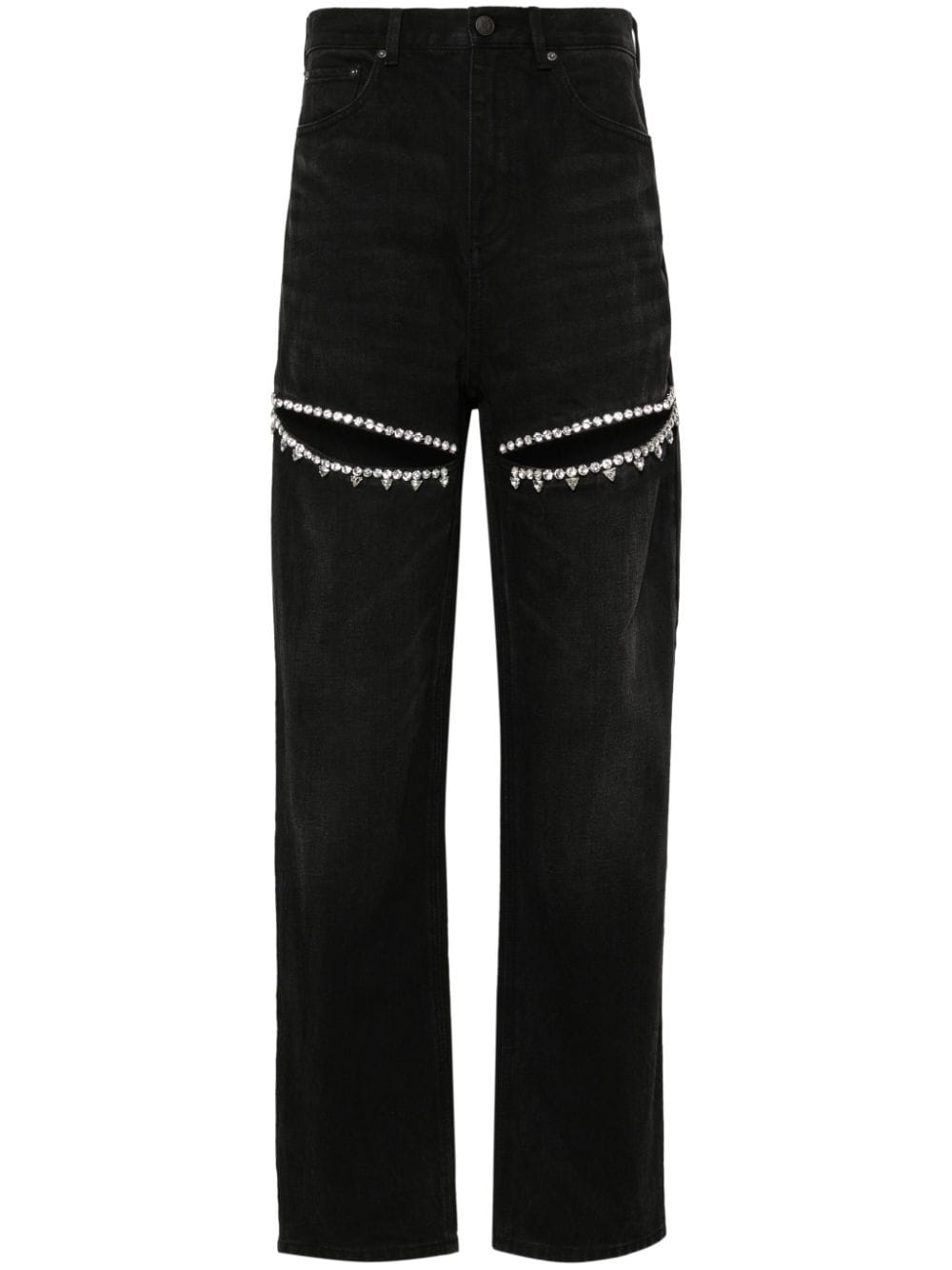 Crystal Slit tapered leg Highlights - Black - Cotton - Denim - Stonewashed - Faded effect - Panelled design - Two thigh slits - Crystal embellishment - Concealed fly and button fastening - Logo-embossed buttons - Classic five pockets - Tapered leg Imported Composition Cotton 100% SIZE & FIT Model measurements Height 5 ft 10 in(1.78 m) Bust/Chest 31.49 in(80 cm) Hips 37 in(94 cm) Waist 23.62 in(60 cm) Measurement FRONT RISE 11.41 in(29 cm) INSIDE LEG 29.52 in(75 cm) HIPS 35.43 in(90 cm) WAIST 25.19 in(64 cm) FittingInformation Designed for a tapered fit, these jeans allow a close fit at the waist and a loose unrestricted fit over the leg with a closer fit towards the ankle Sturdy and hard-wearing, this denim piece offers no stretch This piece fits true to size – take your usual size Washing instructions Dry Clean Only