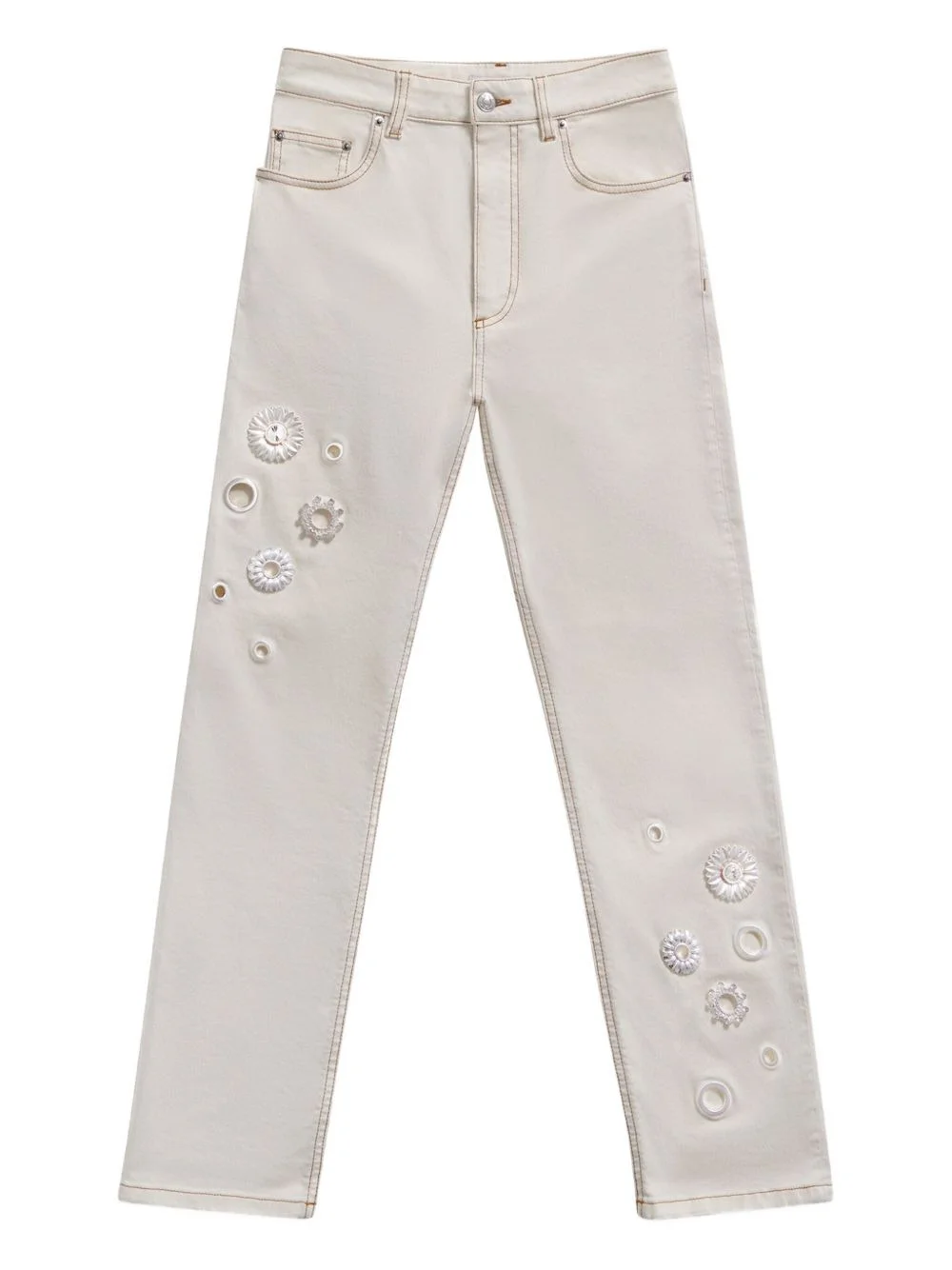 CRYSTAL GROMMET STRAIGHT LEG JEAN