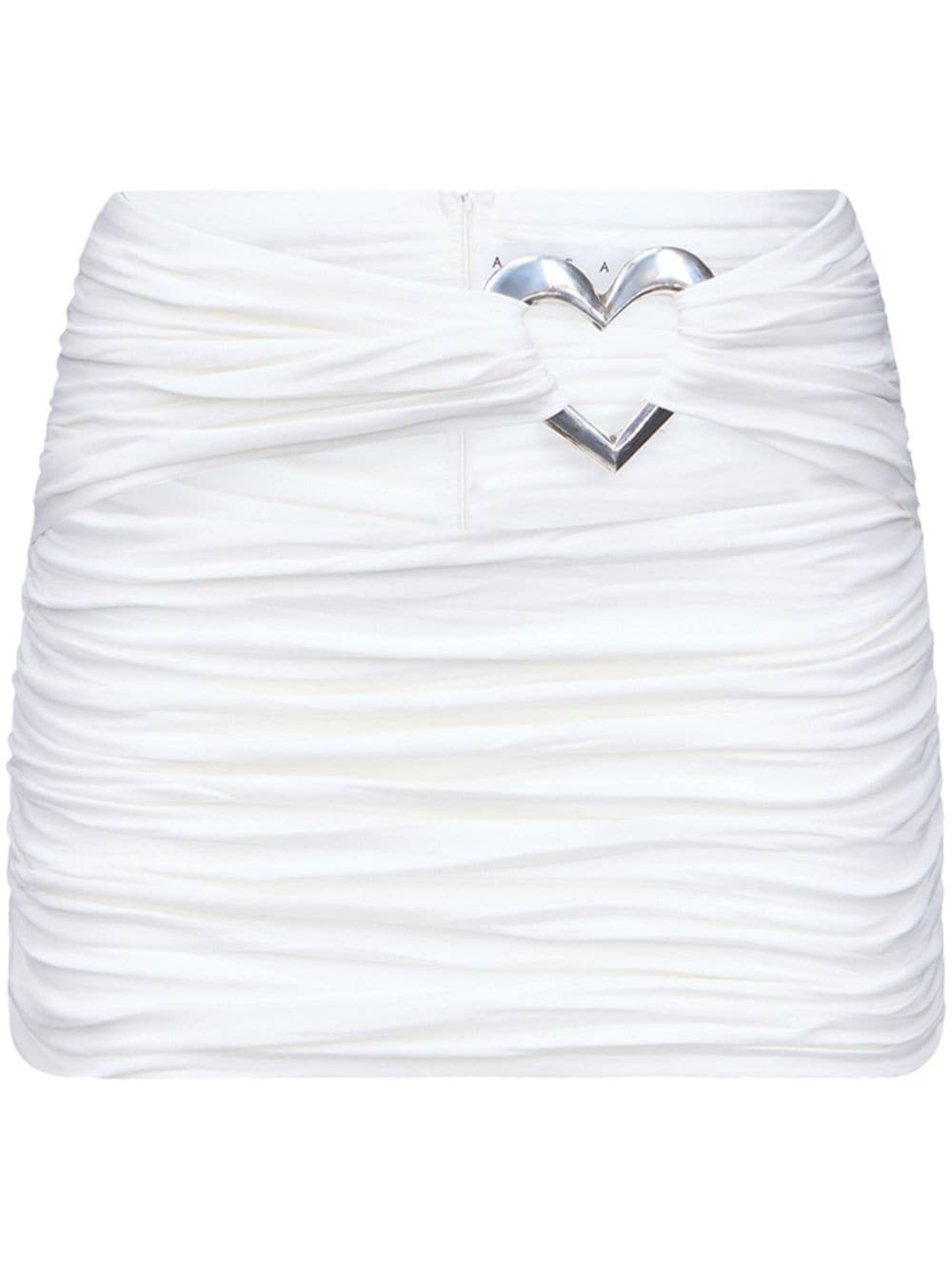 cut-out ruched miniskirt Highlights - Off-white - Stretch-design - Cut-out detailing - Ruched detailing - Fully pleated - Heart motif - Silver-tone hardware - High-waisted - Rear zip fastening - Thigh-length - Straight hem Imported Composition Rayon 60%, Modal 35%, Elastane 5%