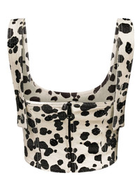 dalmatian-print denim corset top Highlights - Black/white - Cotton - Animal print - Corset style - Wide shoulder straps - Rear zip fastening - Curved hem Imported Composition Cotton 100% Washing instructions Dry Clean Only