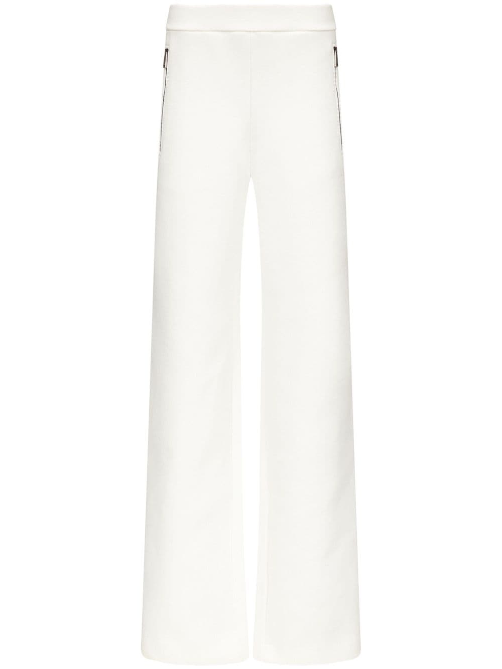 embossed handprint track pants Highlights - Off-white - Elasticated waistband - High-waisted - Two side zip-fastening pockets - Embossed handprint to the rear - Wide leg - Straight hem Made in Italy Composition Cotton 100%