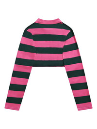 EMBROIDERED FLOWER RUGBY STRIPE LONG SLEEVE CROPPED POLO