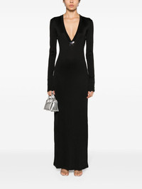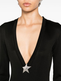 fine-ribbed maxi dress Highlights - Black - Stretch-jersey - Fine ribbed - Silver-tone star applique - V-neck - Long sleeves - Straight hem - Long length - Unlined Made in Italy Composition Viscose 97%, Spandex/Elastane 3% SIZE & FIT Model measurements Height 5 ft 9 in(1.76 m) Bust/Chest 31.88 in(81 cm) Hips 35.43 in(90 cm) Waist 24.8 in(63 cm) Measurement SLEEVE LENGTH 24.8 in(63 cm) HIPS 31.49 in(80 cm) LENGTH 55.11 in(140 cm) WAIST 27.55 in(70 cm) FittingInformation Designed for a close fit throughout Made with a midweight knit, this piece offers some stretch This piece fits true to size – take your usual size Washing instructions Hand Wash