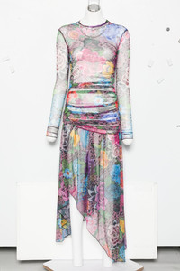 floral-print asymmetric midi dress Highlights - Pinka and multicolor - Floral print - Asymmetric hem - Long sleeves - Gathered waist Made in Italy Composition Polyester 92%, Elastane 8% SIZE & FIT Model measurements Height 5 ft 10 in(1.78 m) Bust/Chest 31.49 in(80 cm) Hips 37 in(94 cm) Waist 23.62 in(60 cm) Washing instructions Machine Wash