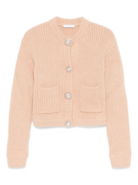 gemstone-button cardigan Highlights - Light beige - Front button fastening - Two front patch pockets - Crew neck - Long sleeves Made in Italy Composition Acrylic 48%, Mohair 26%, Polyamide 19%, Polyester 7%