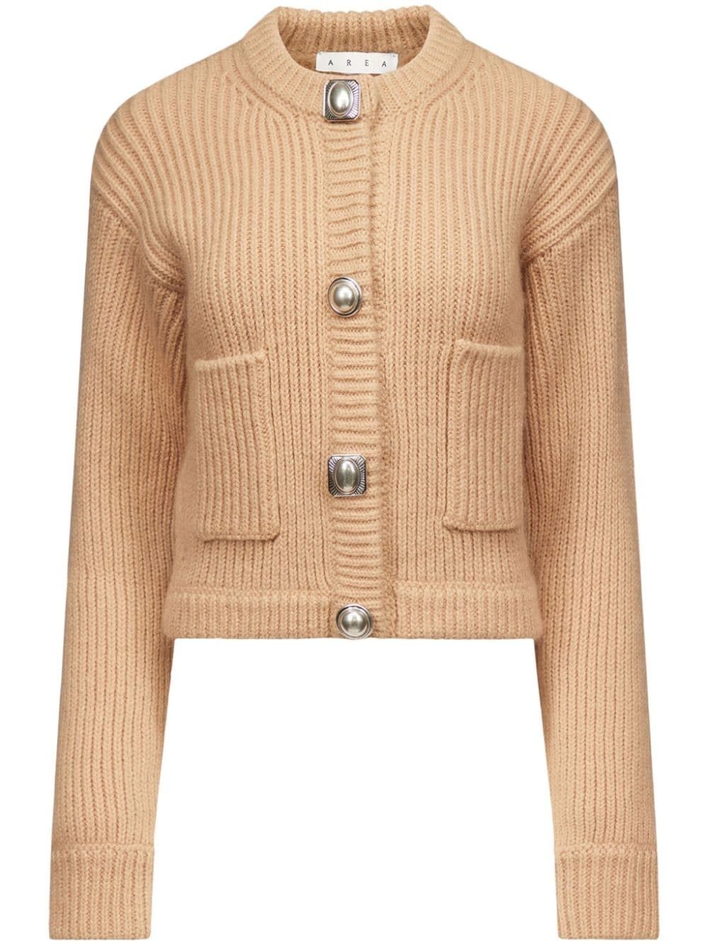 gemstone button knit cardigan Highlights - Light beige - Knitted construction - Front button fastening - Embellished buttons - Crew neck - Long sleeves - Side patch pockets - Straight hem Made in Italy Composition Outer: Acrylic 46%, Mohair 28%, Polyester 7% Washing instructions Read Manufacturer Guidelines
