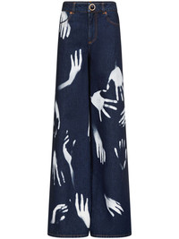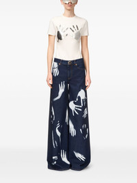 Hand-print wide-leg jeans
