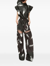 Handprint Slit track pants Highlights - Black/white - All-over graphic print - Elasticated waistband - Two side inset pockets - Decorative zip detailing - Cut-out detailing - Wide leg - Long length Made in Italy Composition Polyester 100%