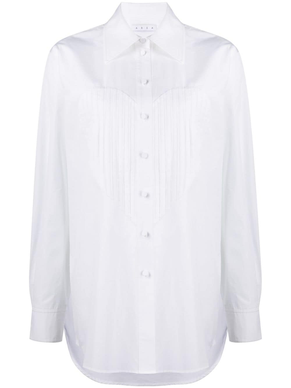 Heart-Bib Tuxedo cotton shirt Made from cotton, this shirt by AREA has an ornate twist. Rendered in solid white it boasts a pleated heart patch at the front, lending the look a romantic feel. Highlights - White - Cotton - Pleat detailing - Classic collar - Front button fastening - Long sleeves - High-low hem Made in United States Composition Body: Cotton 100% SIZE & FIT Model measurements Height 5 ft 10 in(1.77 m) Bust/Chest 31.49 in(80 cm) Hips 35.43 in(90 cm) Waist 25.19 in(64 cm) Measurement SLEEVE LENGTH 25 in(63.5 cm) LENGTH 30 in(76.2 cm) WAIST 44.01 in(111.8 cm) BUST 42 in(106.7 cm) FittingInformation Designed to be unstructured, offering a loose fit throughout Made from a midweight non-stretch fabric This piece fits true to size – take your usual size Washing instructions Dry Clean Only