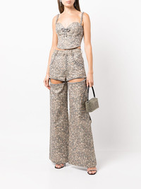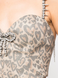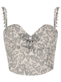 Heart leopard-print bustier top light brown cotton blend all-over leopard print crystal embellishment sweetheart neck rear zip fastening spaghetti straps cropped Imported Composition Cotton 85%, Polyester 15% SIZE & FIT Model measurements Height 5 ft 10 in(1.77 m) Bust/Chest 33.85 in(86 cm) Hips 35.03 in(89 cm) Waist 24.01 in(61 cm) Measurement LENGTH 15.98 in(40.6 cm) WAIST 25.98 in(66 cm) FittingInformation This piece fits true to size. We recommend you get your regular size Cut for a close fit Made with a mid-weight non-stretch fabric