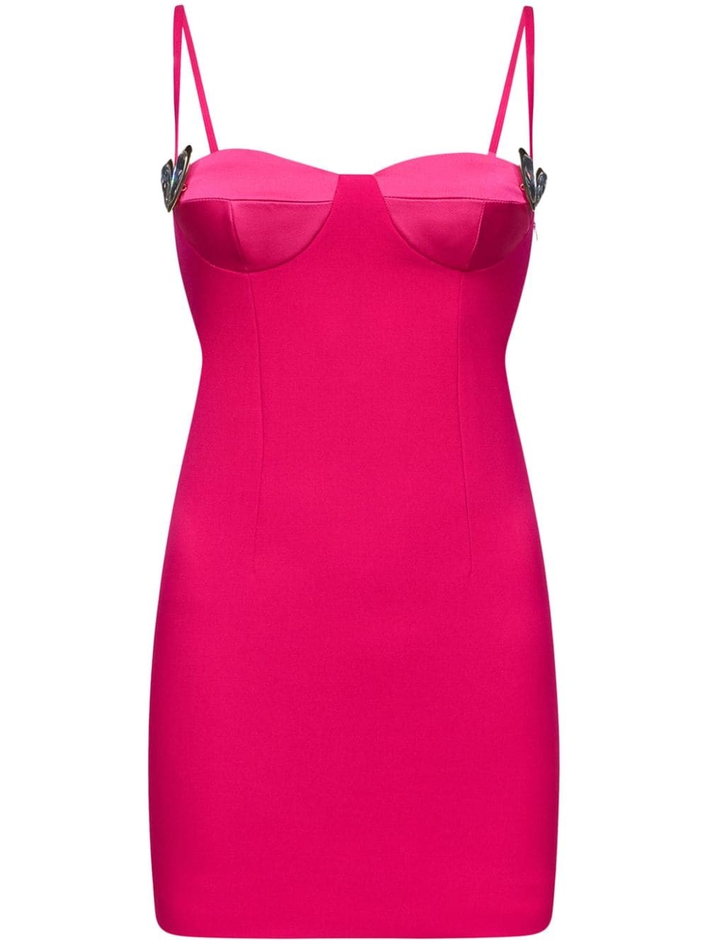 heart-motif twill mini dress Highlights - Hot pink - Wool - Twill weave - Heart motif - Crystal embellishment - Sweetheart neck - Concealed side zip fastening - Spaghetti straps - Thigh-length - Straight hem Made in Italy Composition Wool 100%