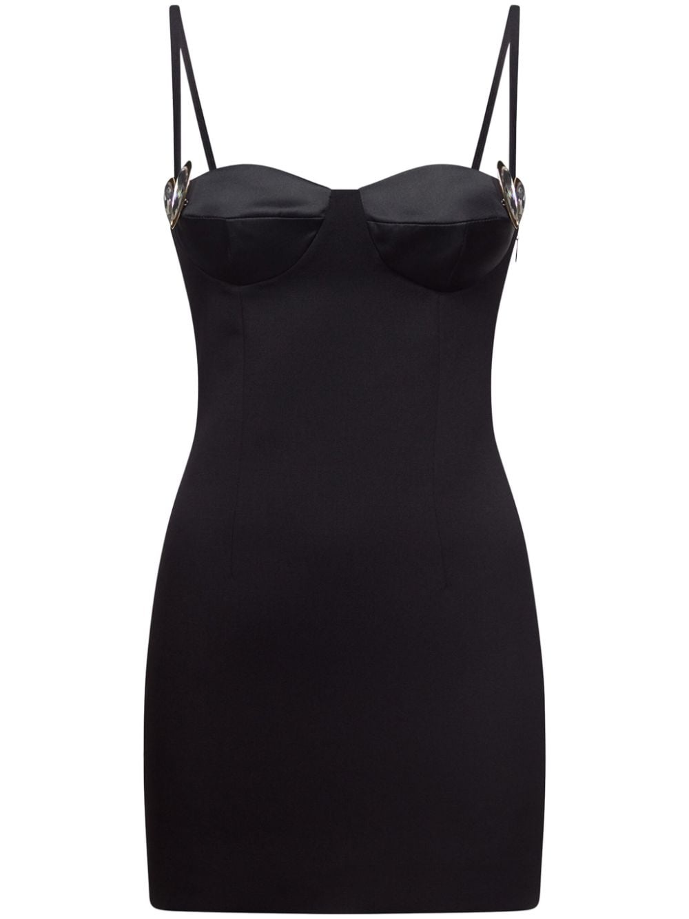 heart-motif twill mini dress Highlights - Black - Wool - Twill weave - Heart motif - Crystal embellishment - Sweetheart neck - Concealed side zip fastening - Spaghetti straps - Thigh-length - Straight hem Made in Italy Composition Wool 100%