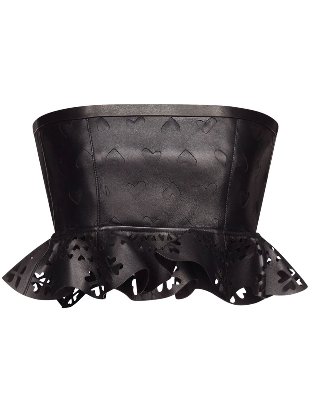 laser-cut leather heart bandeau Highlights - Black - Lambskin - Smooth grain - Laser-cut detail - Heart cut - Perforated detailing - Ruffled detailing - Rear zip fastening - Strapless - Cropped Made in Italy Composition Lamb Skin 100%