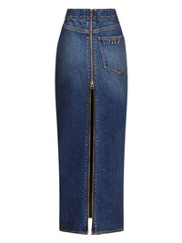 logo-charm denim midi skirt Highlights - Indigo blue - Cotton - Washed denim - Logo charm - Heart motif - Rear slit - High-waisted - Concealed fly and button fastening - Rear zip fastening - Belt loops - Two rounded pockets to the sides - Rear patch pocket - Straight leg - Ankle-length - Straight hem Imported Composition Cotton 100%