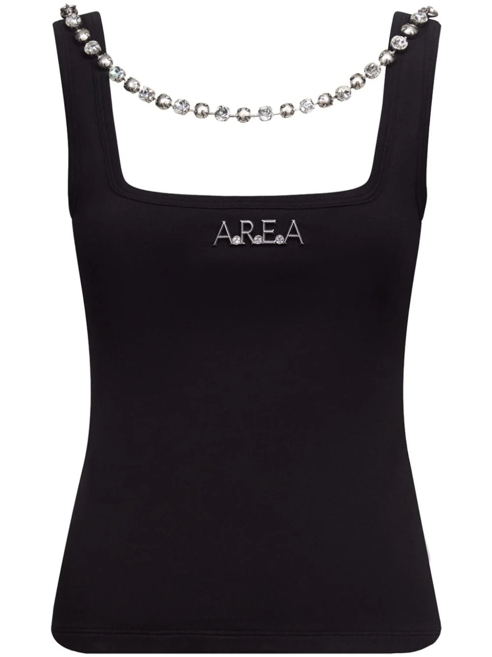 logo-plaque tank top Highlights - Black - Stretch-cotton - Jersey texture - Crystal embellishment - Silver-tone logo plaque - Square neck - Pull-on style - Wide shoulder straps - Straight hem Made in Italy Composition Cotton 94%, Elastane 6% SIZE & FIT Measurement LENGTH 19.01 in(48.3 cm) WAIST 27.99 in(71.1 cm) BUST 29.01 in(73.7 cm) Washing instructions Dry Clean Only