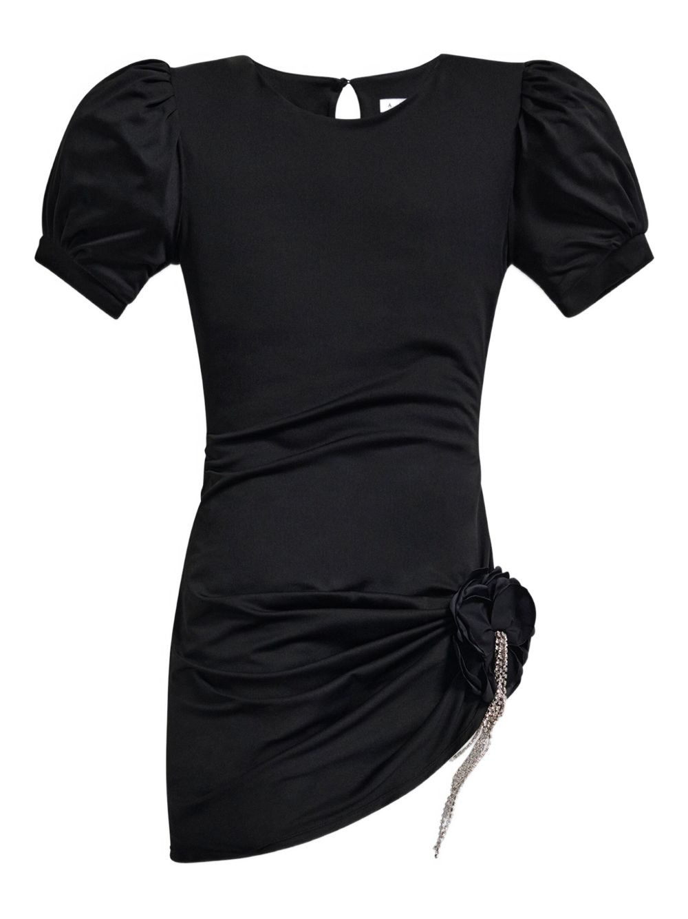 puff-sleeve crystal-embellished mini dress Highlights - Black - Puff sleeves - Draped detailing - Crystal embellishment Imported Composition Polyester 95%, Elastane 5% Washing instructions Read Manufacturer Guidelines
