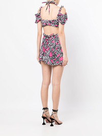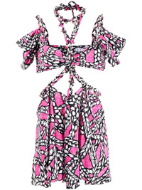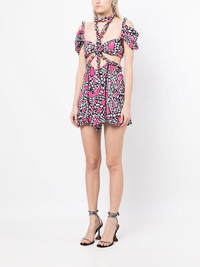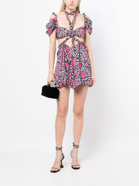 rope-print cut-out minidress The Rope is a highlight of AREA's SS23 collection, as seen embodied on the design of this minidress in vibrant fuchsia pink, white and black hues. Crafted from silk, the glistening crystal embellishments at the neckline add a glamourous touch to the piece. Imported Composition Silk 100% SIZE & FIT Model measurements Height 5 ft 9 in(1.76 m) Bust/Chest 31.1 in(79 cm) Hips 35.03 in(89 cm) Waist 24.4 in(62 cm) Measurement CHEST 28.34 in(72 cm) HIPS 37.79 in(96 cm) LENGTH 30.7 in(78 cm) WAIST 27.55 in(70 cm) FittingInformation This piece fits true to size. We recommend you get your regular size Designed for a close fit at the bust, waist and hips Made with a mid-weight non-stretch fabric Washing instructions Dry Clean Only