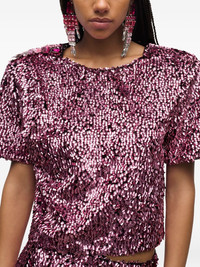 sequin top Highlights - Metallic rose - Sequin embellishment - Round neck - Short sleeves Imported Composition Polyester 95%, Nylon 5% Washing instructions Dry Clean Only