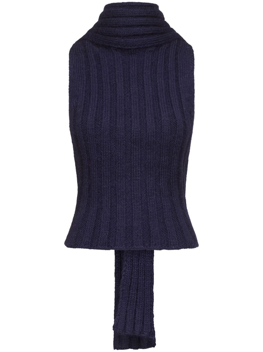 sleeveless twisted knit top Highlights - Midnight blue - Knitted construction - Halterneck tie fastening - High neck - Sleeveless - Low back - Straight hem - Extra-long ties Made in Italy Composition Outer: Acrylic 46%, Mohair 28%, Polyester 7%