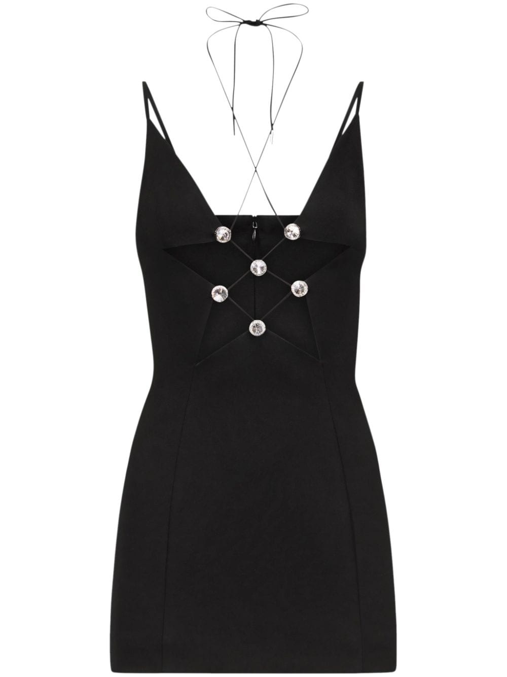 cut out sleeveless mini dress Highlights - Black - Cut-out detailing - Crystal embellishment - Adjustable shoulder straps - Concealed rear zip fastening - Straight hem - Thigh-length Imported Composition Rayon 67%, Nylon 28%, Spandex/Elastane 5% SIZE & FIT Measurement LENGTH 30.7 in(78 cm) WAIST 30.7 in(78 cm) HIPS 39.37 in(100 cm) Washing instructions Dry Clean Only