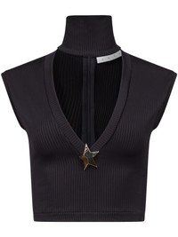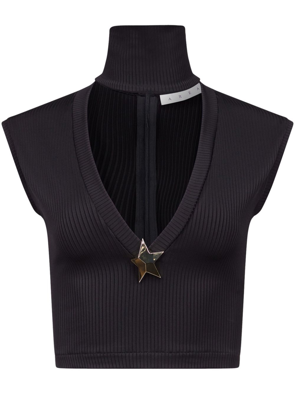 star-stud rib-knit crop top Highlights - Black - Ribbed knit - Star stud embellishment - Cut-out detailing - High neck - Sleeveless - Rear zip fastening - Cropped - Straight hem Made in Italy Composition Viscose 97%, Elastane 3% SIZE & FIT Measurement CHEST 32.28 in(82 cm) LENGTH 14.17 in(36 cm) Washing instructions Dry Clean Only