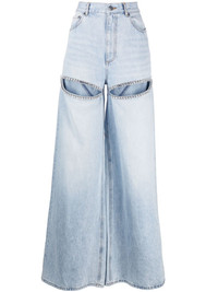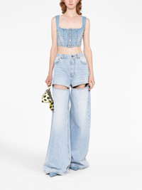 wide-leg crystal jeans AREA brings its penchant for ornate embellishment to a classic silhouette in these blue wide-leg jeans. Infused with the label's high-octane energy, they're decorated with a crystal-adorned heart motif. Highlights - Light blue - Cotton - Cut-out detailing - Front button fastening - Belt loops - Classic five pockets - Crystal embellishment - Wide leg Made in Italy Composition Cotton 100% SIZE & FIT Model measurements Height 5 ft 10 in(1.77 m) Bust/Chest 27.95 in(71 cm) Hips 33.85 in(86 cm) Waist 23.22 in(59 cm) Measurement FRONT RISE 12.99 in(33 cm) HIPS 44.09 in(112 cm) WAIST 32.28 in(82 cm) FittingInformation Designed with a wide leg cut, these jeans allow for a close fit at the waist and offer a loose and roomy fit over the leg Particularly long in length; consider your own measurements Sturdy and hard-wearing, this denim piece offers no stretch This piece fits true to size – take your usual size