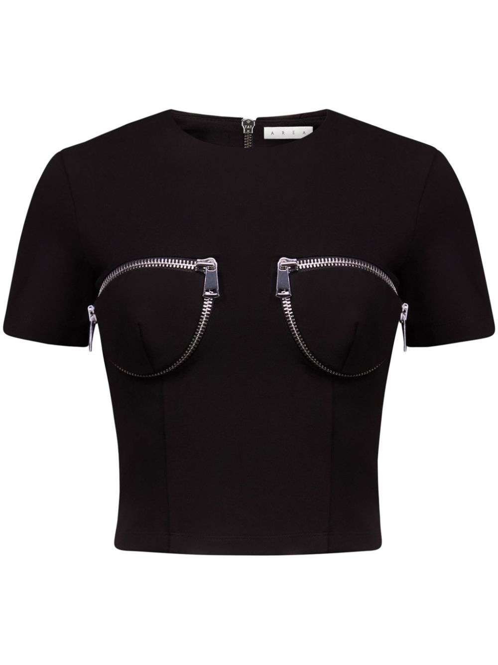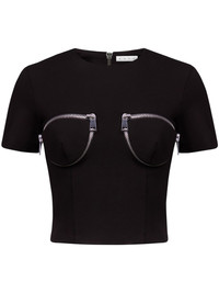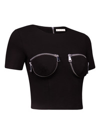zip-detail T-shirt Highlights - Black - Rear zip fastening - Crew neck - Straight hem Imported Composition Fabric 94%, Elastane 6%