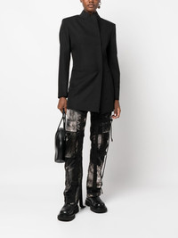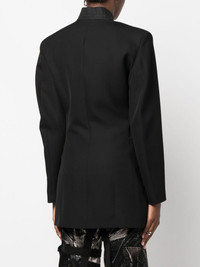 no-lapels virgin wool blazer Highlights - Black - Virgin wool - No lapels - Concealed front fastening - Long sleeves - Chest welt pocket - Two side welt pockets - Straight hem Made in Italy Composition Virgin Wool 100% SIZE & FIT Model measurements Height 5 ft 10 in(1.77 m) Bust/Chest 34.64 in(88 cm) Hips 35.43 in(90 cm) Waist 24.8 in(63 cm) FittingInformation Designed for a slim fit that sits just away from the body offering a close yet comfortable fit The internal shoulder pads offer a structured shape Made from a midweight non-stretch fabric This piece fits small – take one size up Washing instructions Dry Clean Only
