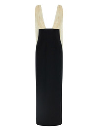 V-neck maxi dress Highlights - Black and beige - V-neck - Sleeveless - Zip closure - Back split Made in Italy Composition Virgin Wool 95%, Spandex/Elastane 4%, Polyamide 1% Washing instructions Read Manufacturer Guidelines