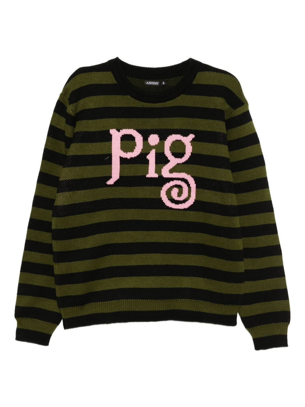 graphic-print sweatshirt Highlights - Dark green - Crew neck - Ribbed cuffs Imported Composition Acrylic 100% SIZE & FIT Model measurements Height 5 ft 10 in(1.77 m) Bust/Chest 32.67 in(83 cm) Hips 37 in(94 cm) Waist 25.98 in(66 cm) FittingInformation Designed to be unstructured, offering a loose fit throughout Made with a midweight knit, this piece offers some stretch Washing instructions Dry Clean Only