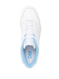 EX89 low-top sneakers Highlights - White/blue - Panelled design - Logo patch at the tongue - Perforated detailing - Branded insole - Round toe - Front lace-up fastening - Flat rubber sole Imported Composition Lining: Fabric 100% Outer: Calf Leather 100% Sole: Rubber 100% SIZE & FIT Measurement HEEL 1.37 in(3.5 cm) Sole height 0.98 in(2.5 cm)