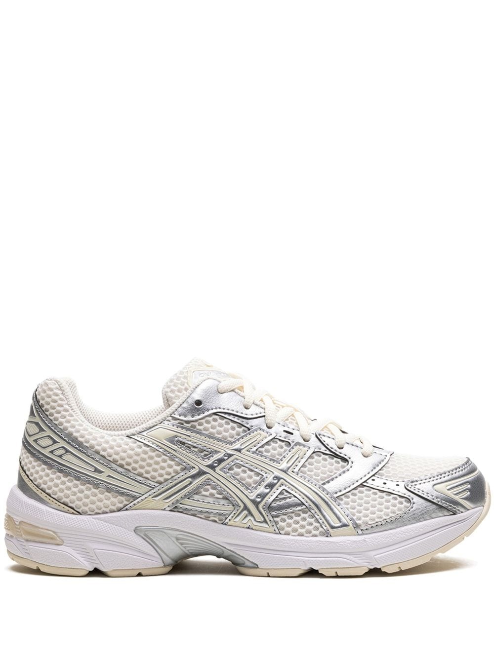 GEL-1130 "Cream Pure Silver" The ASICS GEL-1130 sneakers honour the ninth iteration of the brand's GEL-1000 series. The essence of this shoe's construction is rooted in the composition, with cream white mesh panelling enhanced with silver-tone accents giving the pair a more modern aesthetic. Additionally, the label's signature GEL technology is fitted in the heel for lasting comfort. Highlights - White - Cream white - Silver-tone - Mesh panelling - Signature tiger stripes - Round toe - Front lace-up fastening - Branded insole - Rubber sole Imported Composition Sole: Rubber 100% Outer: Mesh 100% Lining: Fabric 100%