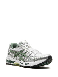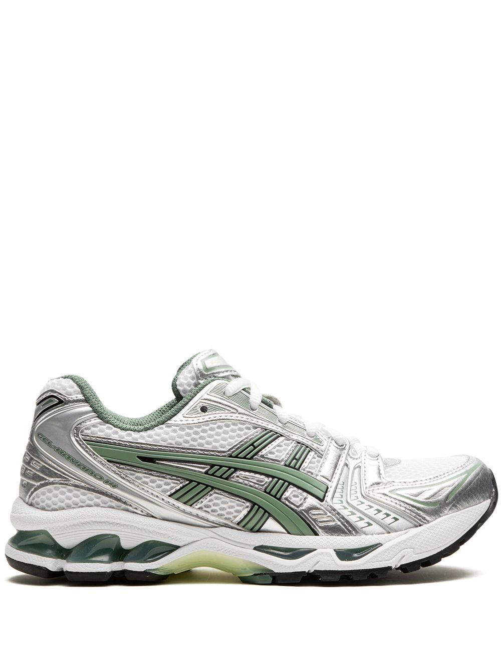 Gel Kayano 14 "Slate Grey" sneakers A running silhouette, the GEL-Kayano 14 pairs a sleek, low-top silhouette with mesh detailing for a breathable design. Underfoot, GEL technology adds cushioned support to the style for added wearability. Highlights - White/silver-tone/light green - Leather - Metallic sheen - Mesh panelling - Round toe - Front lace-up fastening - Chunky rubber sole - These styles are supplied by a premium sneaker marketplace. stocking only the most sought-after footwear, they source and curate some of the most hard to find sneakers from around the world. Imported Composition Outer: Leather 100%, Polyester 100% Sole: Rubber 100% Lining: Fabric 100% SIZE & FIT FittingInformation This piece fits large – take one size down Measurement HEEL 1.57 in(4 cm) Sole height 0.78 in(2 cm)