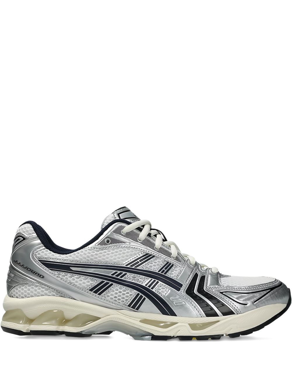 Gel-Kayano 14 "White/Midnight Navy" sneakers Highlights - White - Navy blue details - Mesh upper - Gel cushioning - Stadium goods can only accept returns of underwear in its original sealed and branded packaging unless the item is damaged or faulty upon delivery to you. Imported Composition Lining: Other fibres 100% Sole: Rubber 100% Outer: Other fibres 100%