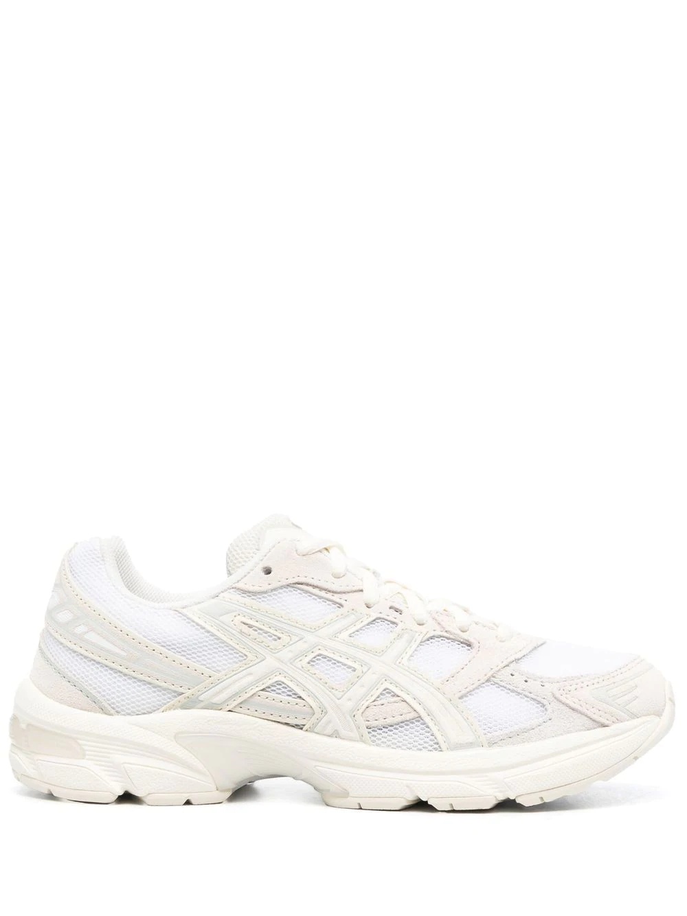 Gel panelled low-top sneakers First released in 2008, Asics’ GEL-1130 sneakers take inspiration from the brand’s GEL-KAYANO™ 14 style and are designed to provide stability and comfort when running. This pair is crafted with breathable mesh uppers trimmed overlays in a Birch beige hue. Highlights - White birch - Panelled design - Mesh detailing - Logo patch at the tongue - Front lace-up fastening - Flat rubber sole Imported Composition Outer: Calf Suede 100%, Fabric 100% Sole: Rubber 100% Lining: Fabric 100% SIZE & FIT Measurement Sole height 0.98 in(2.5 cm) HEEL 1.37 in(3.5 cm)