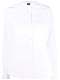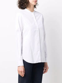 band-collar cotton shirt daisy white cotton band collar front button fastening long sleeves buttoned cuffs asymmetric hem Imported Composition Cotton 100% SIZE & FIT Model measurements Height 5 ft 9 in(1.76 m) Bust/Chest 33.07 in(84 cm) Hips 34.64 in(88 cm) Waist 25.59 in(65 cm) FittingInformation This piece fits true to size. We recommend you get your regular size Cut for a loose fit Made with a mid-weight non-stretch fabric Washing instructions Machine Wash