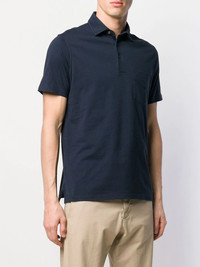 basic polo shirt Navy blue cotton basic polo shirt from Aspesi featuring a button down collar, short sleeves, a chest pocket and a straight hem. Imported Composition Cotton 100% SIZE & FIT Model measurements Height 6 ft 2 in(1.89 m) Bust/Chest 37.79 in(96 cm) Hips 37 in(94 cm) Waist 29.92 in(76 cm) Measurement CHEST 42.12 in(107 cm) Shoulder Width 16.92 in(43 cm) FittingInformation Designed for a relaxed fit, this polo shirt offers comfort and movement Made from a midweight non-stretch fabric, this piece offers minimal elasticity when worn This piece fits true to size – take your usual size Washing instructions Machine Wash