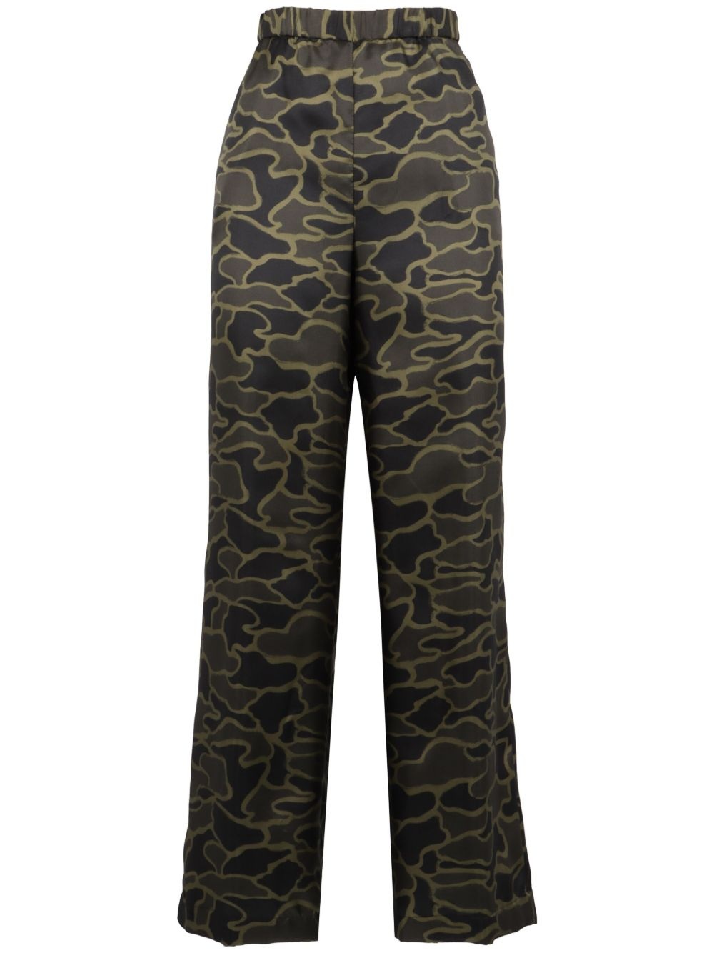 camouflage-pattern trousers Highlights - Olive green - Elasticated waistband - Two side slit pockets Imported Composition Silk 100%
