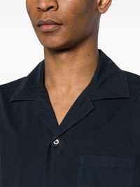 camp-collar cotton shirt Highlights - Midnight blue - Cotton - Poplin texture - Crinkled finish - Camp collar - Front button fastening - Short sleeves - Chest patch pocket - Two front patch pockets - Straight hem Made in Italy Composition Cotton 100% SIZE & FIT Model measurements Height 6 ft 2 in(1.87 m) Bust/Chest 36.22 in(92 cm) Hips 37 in(94 cm) Waist 27.95 in(71 cm) Measurement CHEST 42.51 in(108 cm) SLEEVE LENGTH 20.66 in(52.5 cm) LENGTH 27.55 in(70 cm) Shoulder Width 18.11 in(46 cm) FittingInformation Designed for a regular fit, allowing for a comfortably loose fit throughout the body Made from a midweight non-stretch fabric This piece fits true to size – take your usual size