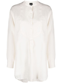 collarless linen bib shirt