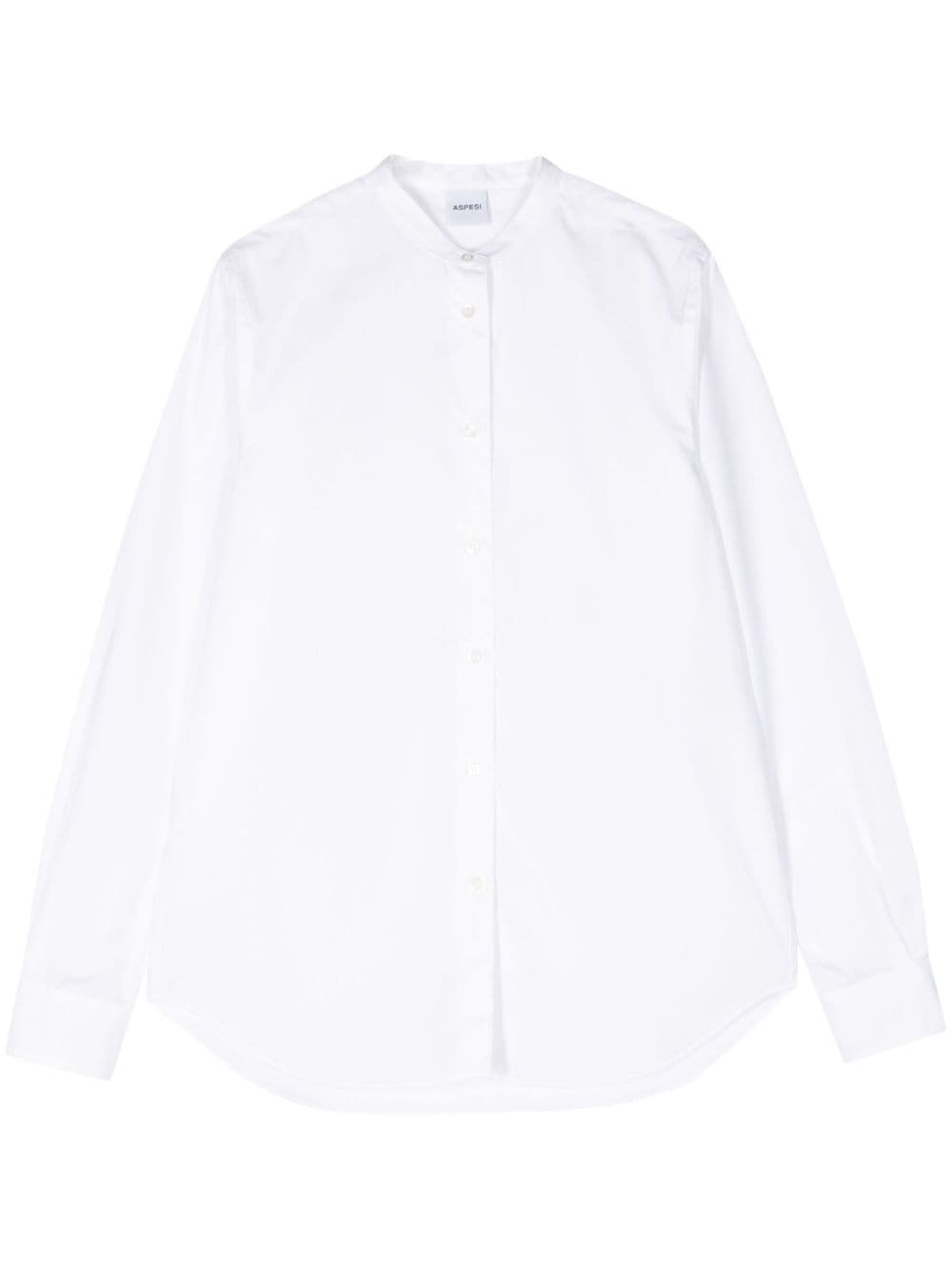 cotton poplin shirt Highlights - White - Cotton - Poplin texture - Rounded collar - Long sleeves - Buttoned cuffs - Internal logo tag - Curved hem - Front button fastening Imported Composition Cotton 100% Washing instructions Machine Wash